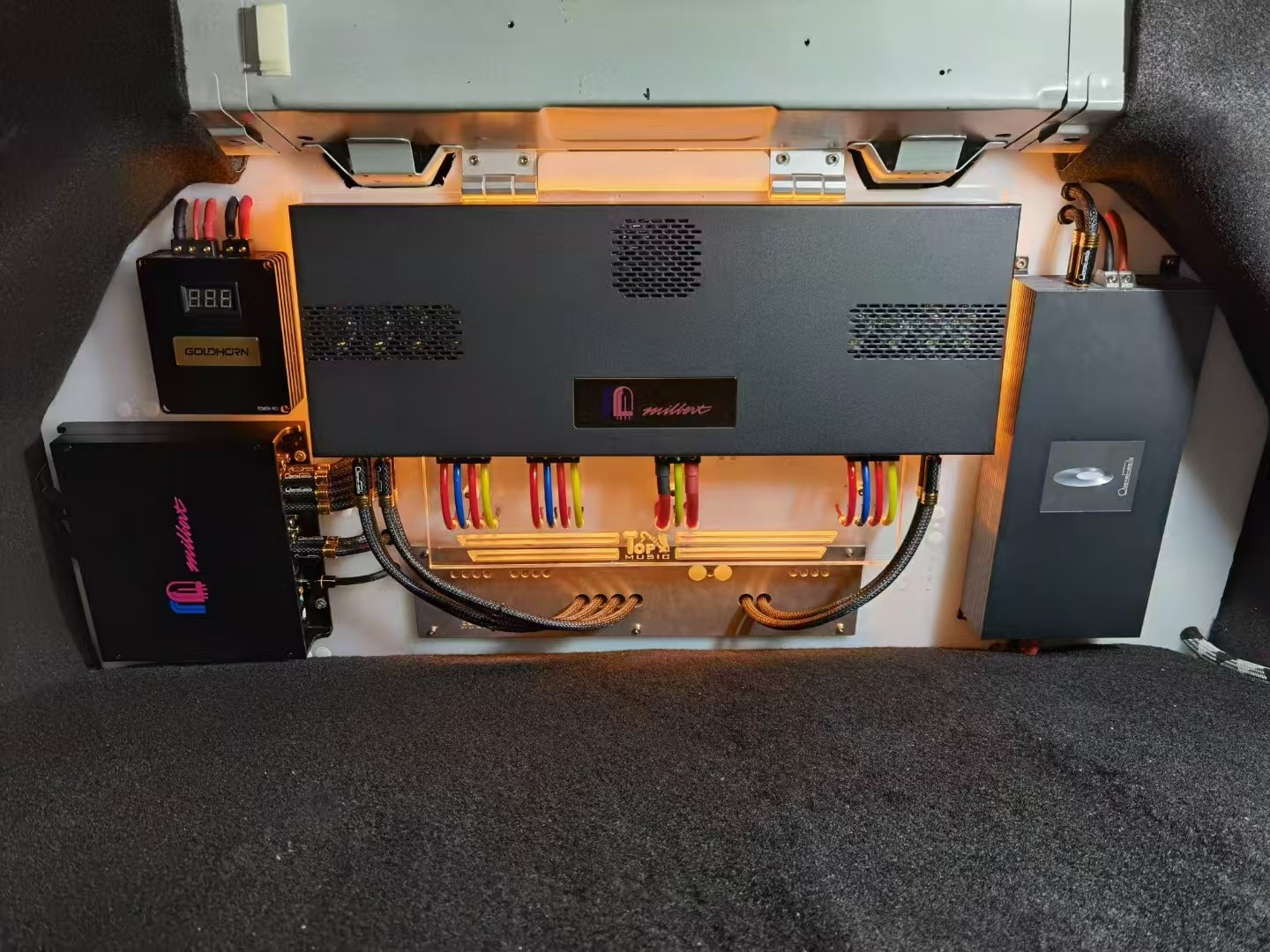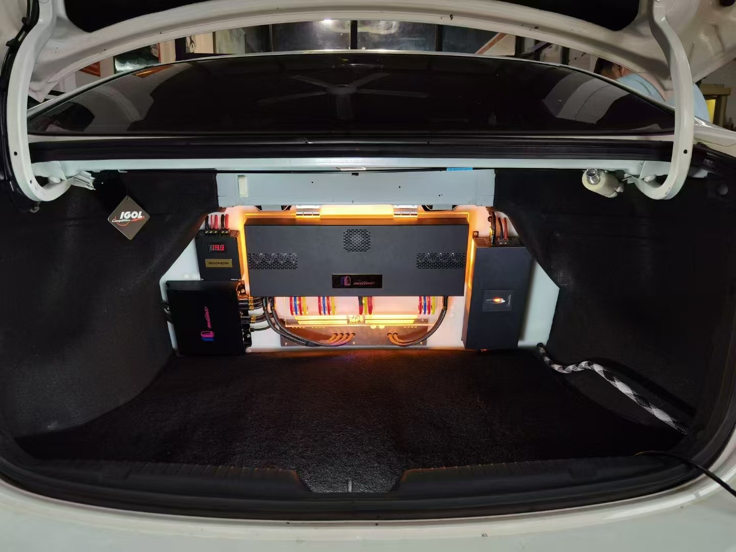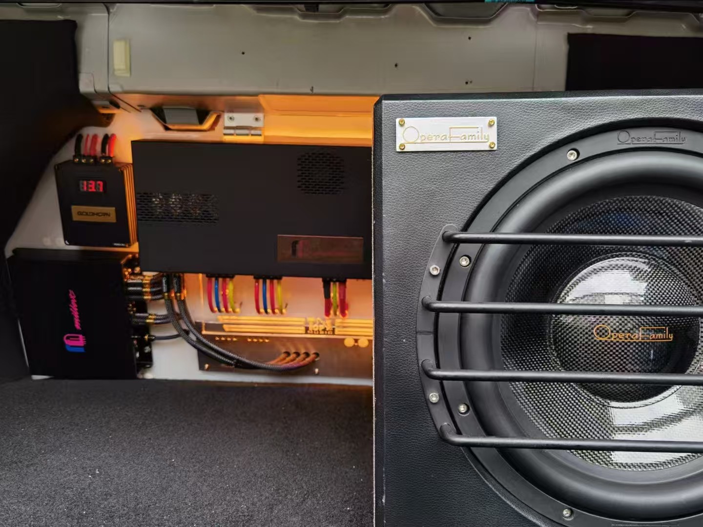 安裝邁博特信眾1六路功放+MD12十二路DSP+歌劇世家A11單路低音功放,大功率功放為喇叭提供穩(wěn)定充沛的功率,讓聲音更飽滿有力,邁博特MD12十二路DSP,對音頻信號的頻率響應(yīng)、相位、聲道平衡等參數(shù)進(jìn)行調(diào)節(jié),優(yōu)化車內(nèi)的聲音分布,提升音樂的平衡感與清晰度。