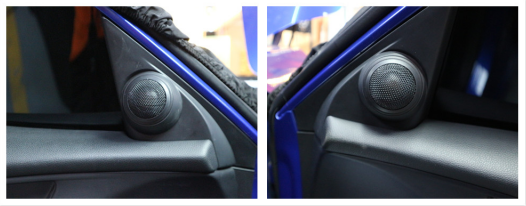 前門高音單元在前門三角板位置安裝,升級(jí)之后音質(zhì)清晰,層次分明,人聲和樂器聲變現(xiàn)更為出色。