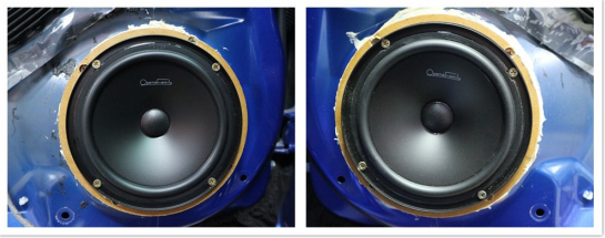歌劇世家F-25兩分頻套裝喇叭在前門原車?yán)任恢脤?duì)位安裝。