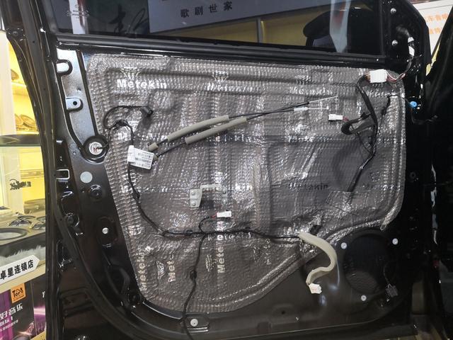 原車門板只有一層薄膜,經(jīng)過雙層隔音處理后,門板的共振噪音消失不見了,且雙層隔音能使車門形成一個(gè)靜謐的箱體環(huán)境,保證了安裝在門板上喇叭的音質(zhì)發(fā)揮。