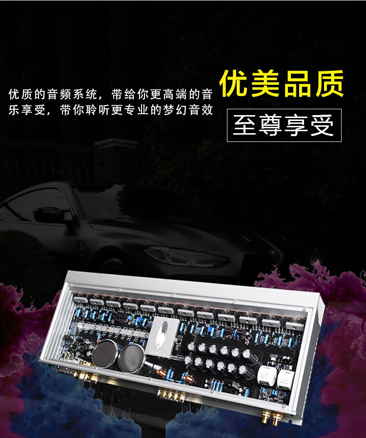 雙單聲道式設(shè)計;定制純銅鍍金RCA座、電源端子、喇叭端子;德國蒙多福油浸電容;LED透視式外觀設(shè)計;開關(guān)式輸入增益調(diào)節(jié);外置高效風(fēng)冷散熱系統(tǒng)。 輸入功率:2x300W@4Ω/1x800W@4Ω THD+N:<0.01% 信噪比:>100dB 頻響范圍:10Hz-30KHz±1dB 輸入靈敏性:0.5V-5V 輸入阻抗:47kΩ 待機電流:<1.2A